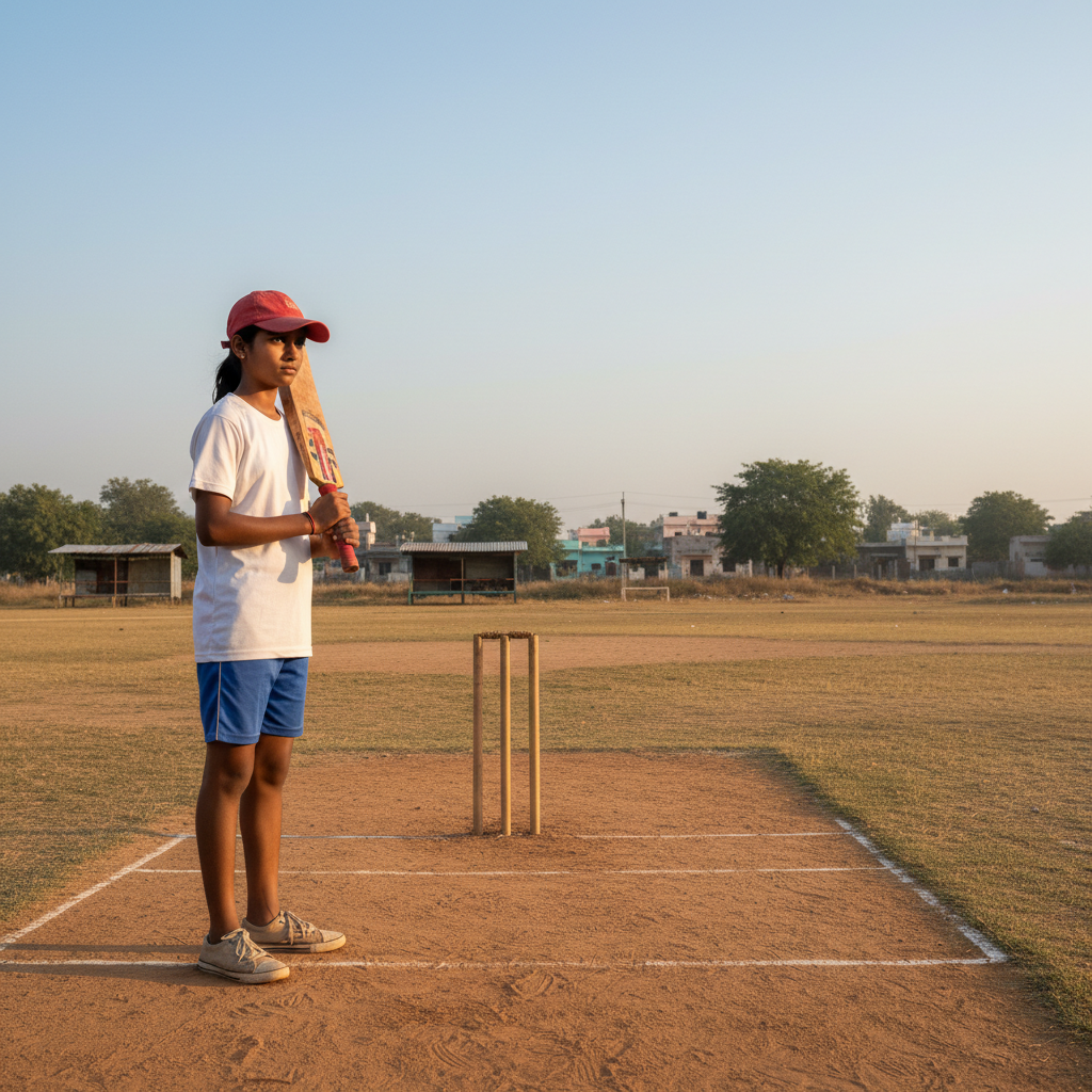 बड़े शहरों के खिलाड़ियों की तरह उसके पास न तो कोई महंगा क्रिकेट किट था, न ही कोई प्रोफेशनल एकेडमी और न ही कोई बड़ा कोच। उसके पास था तो बस एक अटूट जुनून और सीखने की ललक। फटे-पुराने ग्लव्स, दोस्तों से माँगा हुआ बल्ला और टूटी-फूटी गेंदों से उसने अपनी प्रैक्टिस जारी रखी। जहाँ दूसरे खिलाड़ी टर्फ विकेट पर खेलते थे, वहीं वो ऊबड़-खाबड़, पथरीले मैदान पर पसीना बहाती थी। उसका कोच उसका खुद का जज्बा था, और उसका स्टेडियम उसके गाँव का वही धूल भरा मैदान।